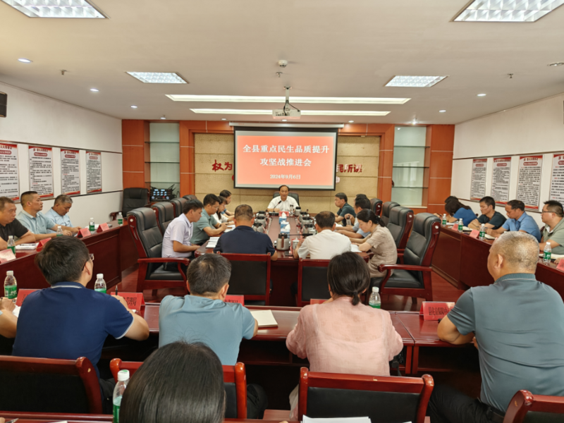 9月6日,全县重点民生品质提升攻坚战推进会召开,县人大常委会主任周小健出席会议并讲话,副县长范磊、杨成奎,副县长、公安局长曾红根出席会议。