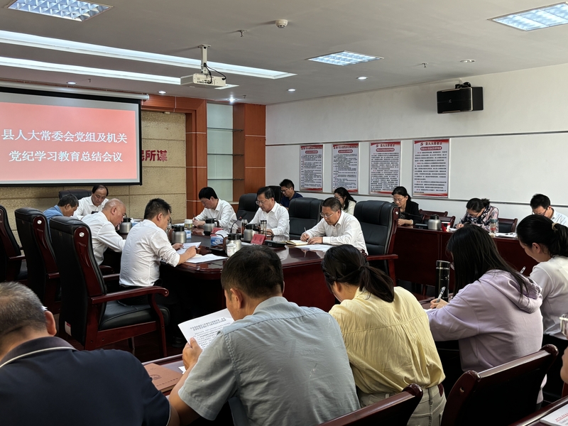 会议传达学习了中央、省委、市委、县委党纪学习教育总结会精神。邓震宇汇报了县人大常委会党组党纪学习教育工作总结。