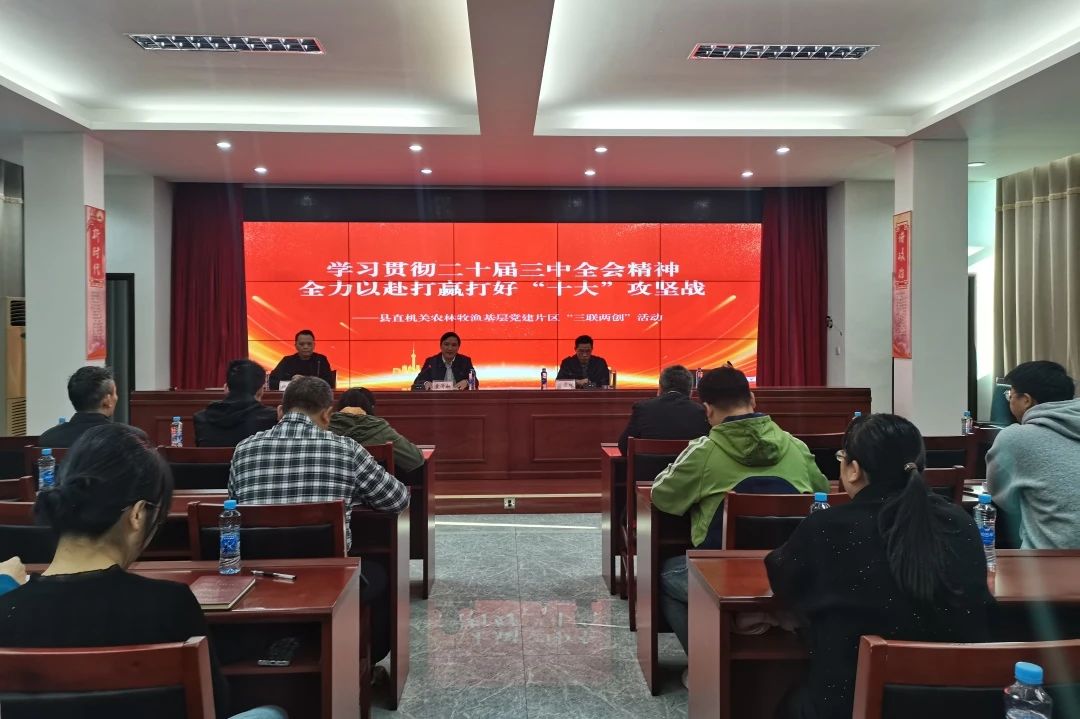 10月25日,新干县县直机关农林牧渔片区联合开展“三联两创”活动,县林业局、县水利局、县农业农村局、县自然资源局、县生态环境局、县卫健委、县人大办等7个单位,共计40余人参加活动。县林业局党组书记、局长袁清如同志主持活动,县委组织部一级主任科员傅五根同志到会指导宣讲。