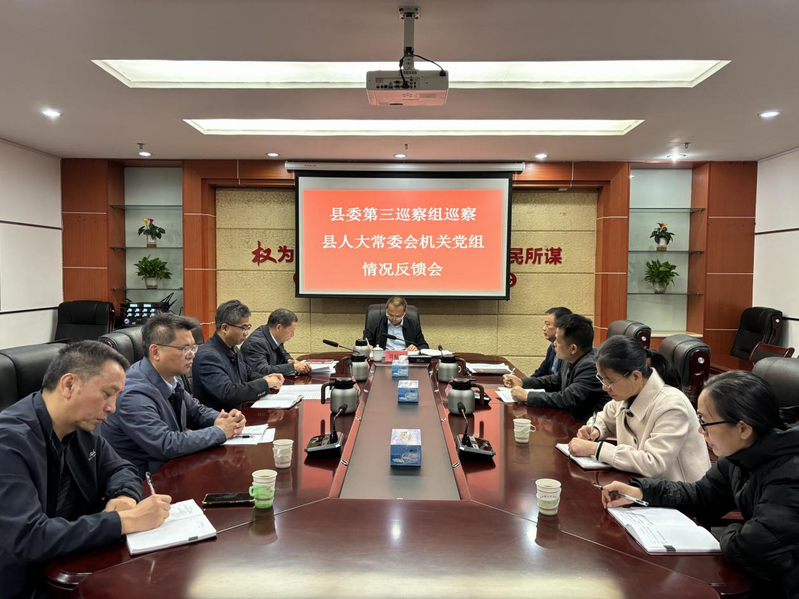 11月20日,县委第三巡察组巡察县人大常委会机关党组情况反馈会召开。会议由县人大常委会机关党组书记、办公室主任熊少云同志主持,县委副书记刘赋祝,县委组织部常务副部长艾建军、县委第三巡察组组长刘贱荪、对口派驻人大机关党组纪检监察组组长何军,县人大常委会机关全体干部职工参加会议。