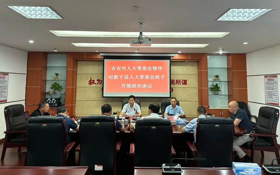 7月3日,市人大常委会副主任匡晓卫对县人大常委会班子开展政治谈话。县人大常委会主任周小健,副主任邓干明、刘志连、邓震宇、刘小峻、方亮参加谈话。