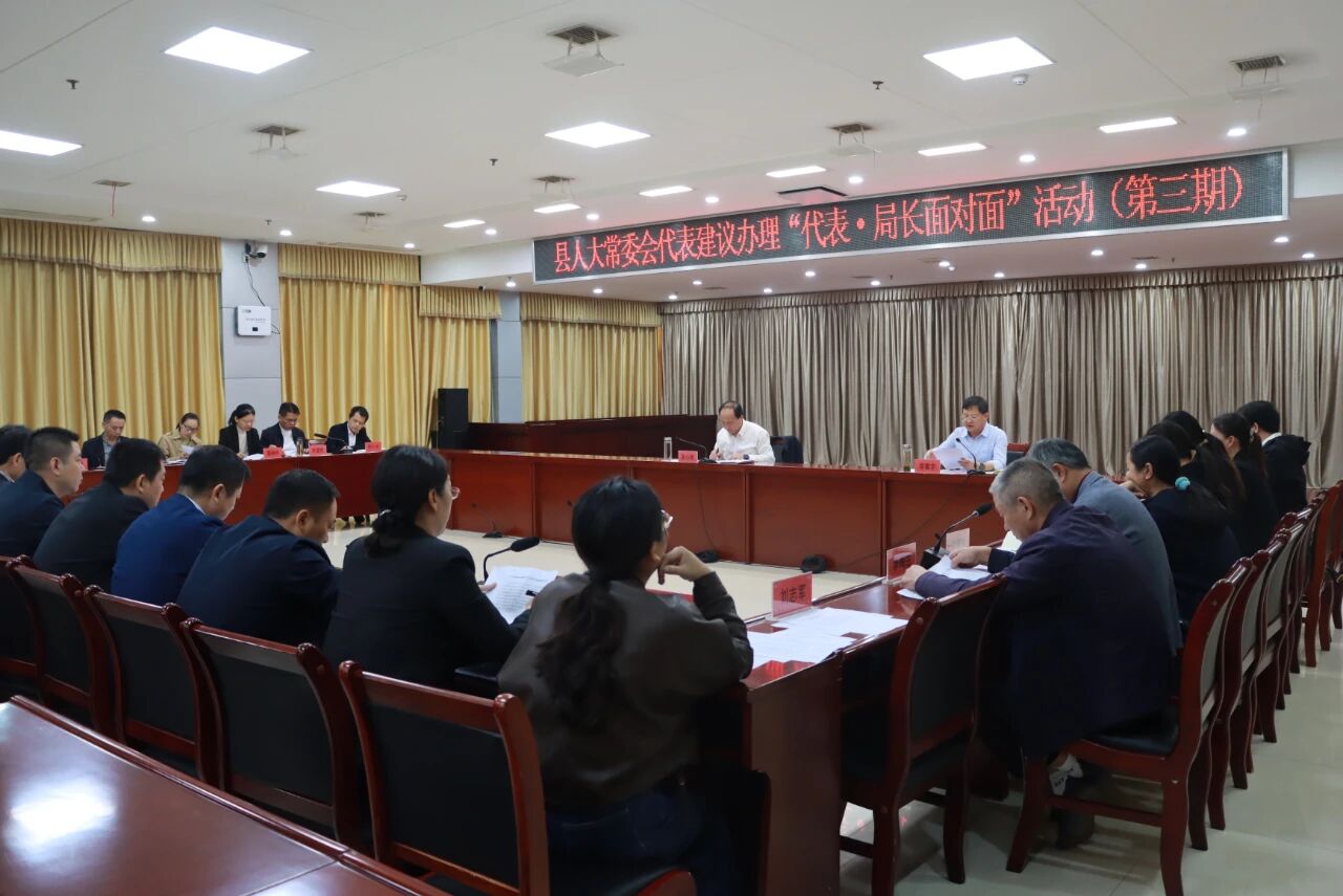 10月30日,县人大常委会举办第三期代表建议办理“代表·局长面对面”活动。县人大常委会主任周小健出席活动,县人大常委会副主任邓震宇主持活动,各专工委办主任,县政府办分管同志,部分提建议的人大代表,以及县住建局、县水利局、县农业农村局等11个承办单位主要负责同志参加活动。