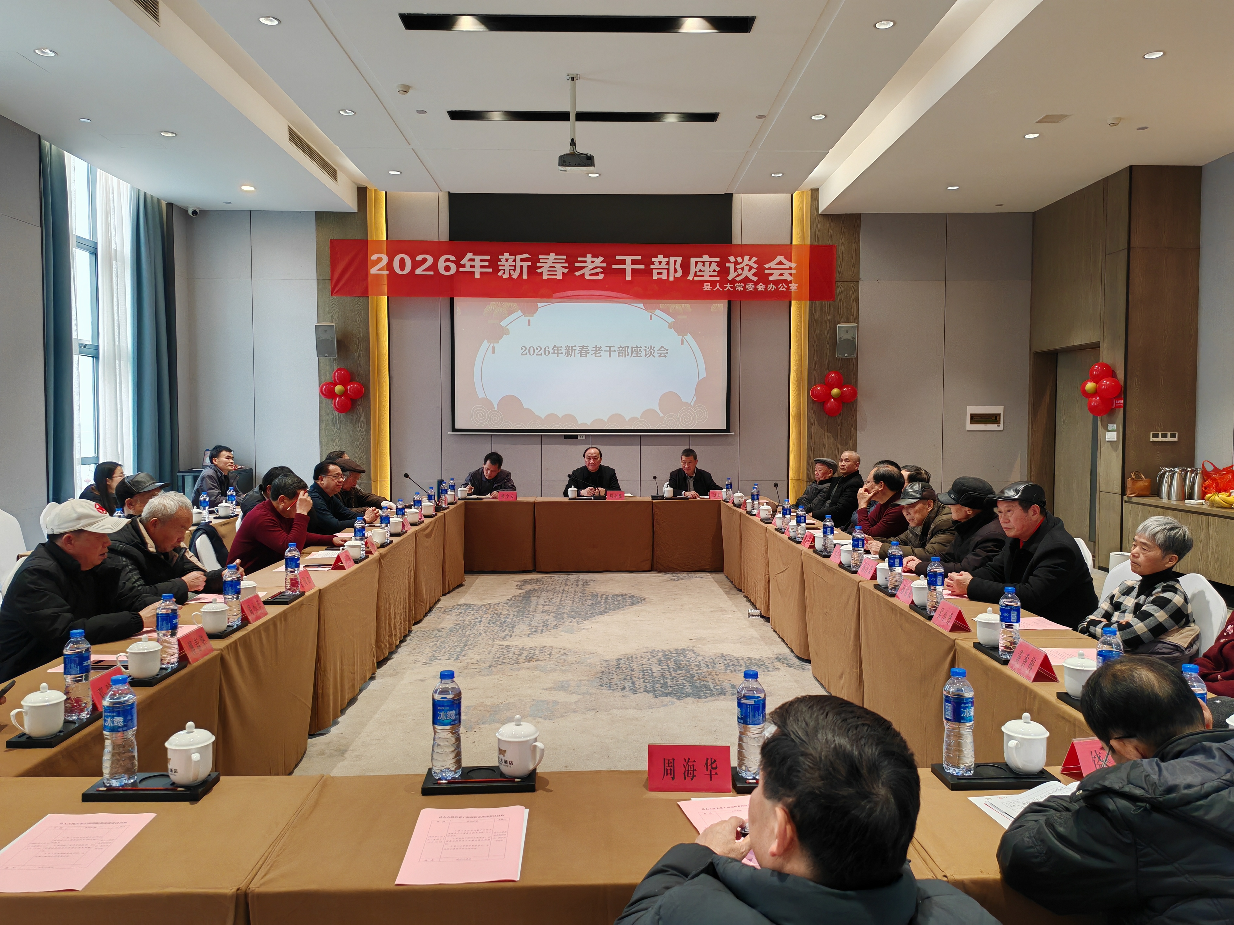 2月4日,县人大常委会组织召开2026年县人大机关老干部迎新春座谈会。县人大常委会党组书记、主任周小健出席会议并讲话,党组副书记、副主任刘志连主持会议,县人大机关退休老干部参加会议。