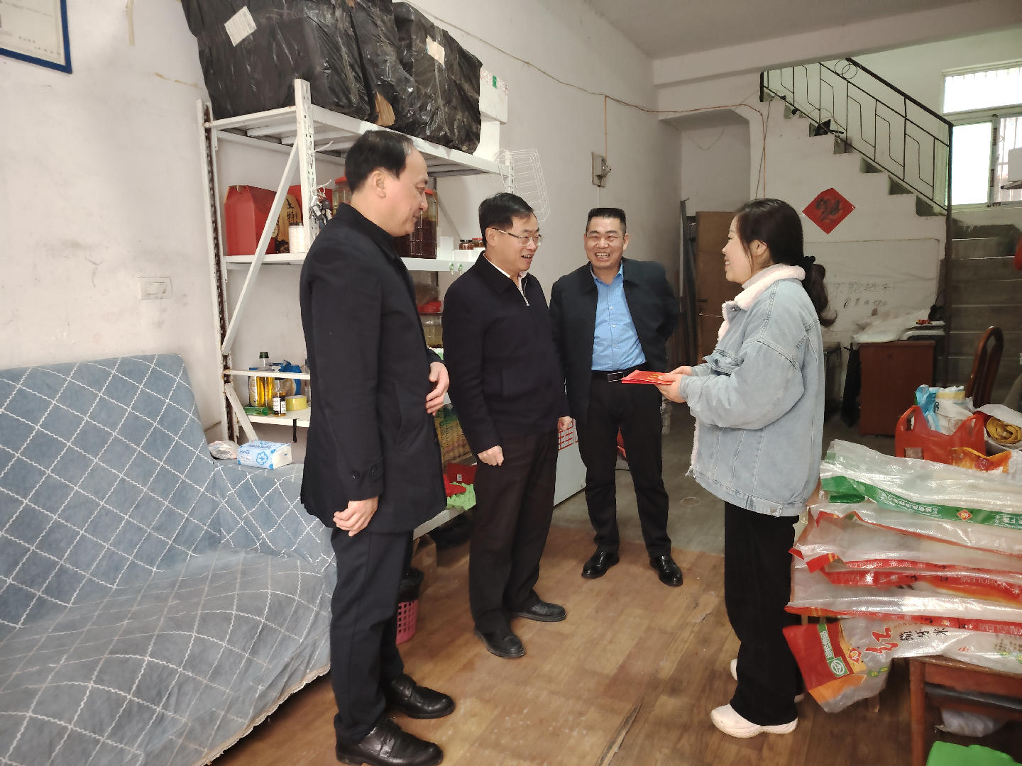 随后,肖学亮一行来到市人大代表、爆买社区电商负责人曾吉红的店内,了解产品销售、带动农户增收等情况,肯定其助力特色农产品走出乡村的成效,并送上慰问金和慰问信。