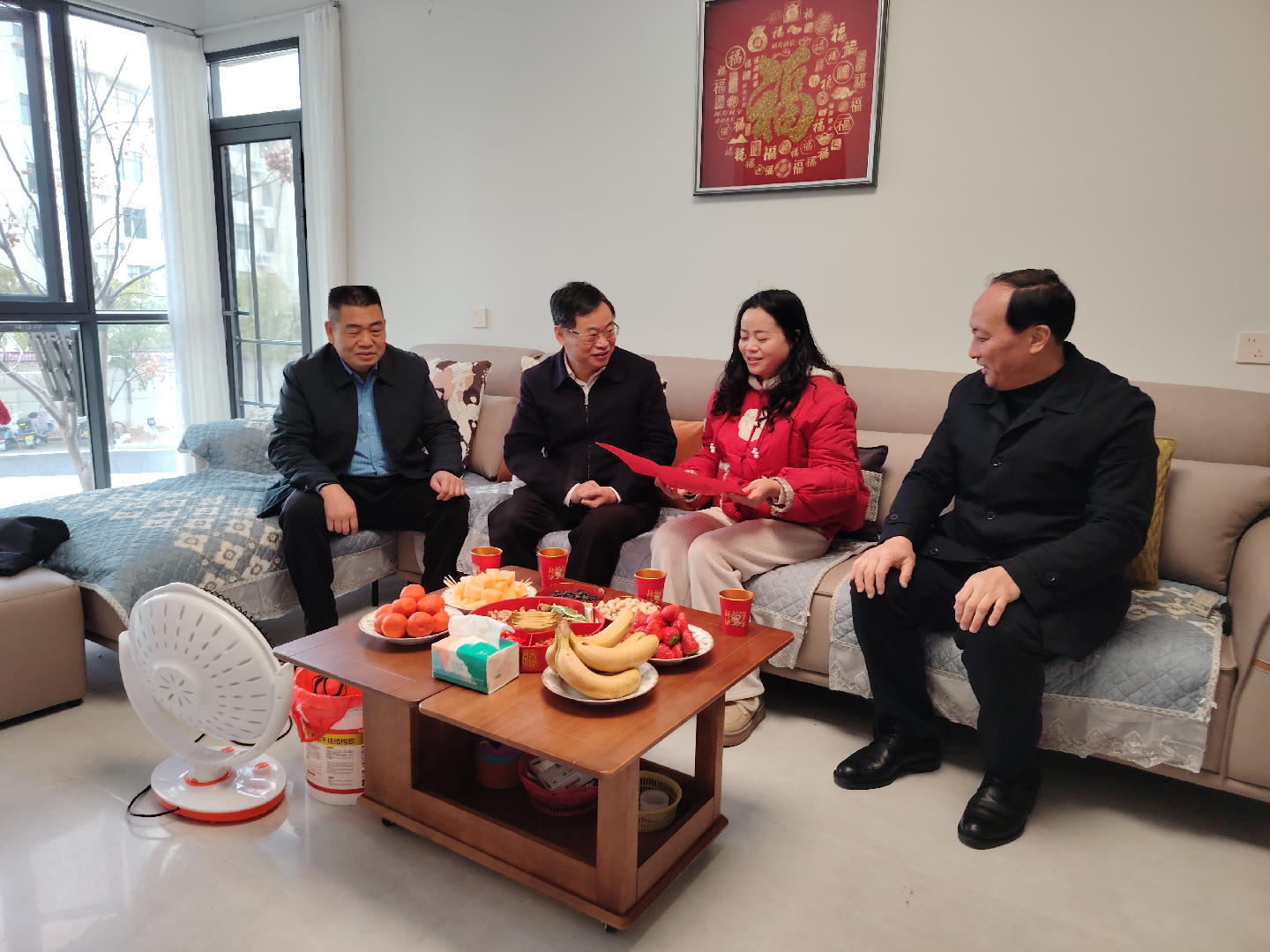 2 月 11 日,市人大常委会副主任、市总工会主席肖学亮,市人大社会建设委主任委员徐顺勇一行来到我县,走访慰问基层市人大代表,向他们致以诚挚问候和新春祝福。县人大常委会主任周小健、副主任刘志连陪同走访。