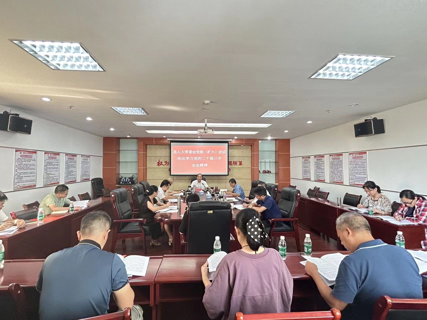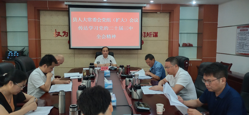 7月30日,新干县人大常委会党组(扩大)会议召开,专题传达学习党的二十届三中全会精神和全省、全市、全县领导干部会议精神