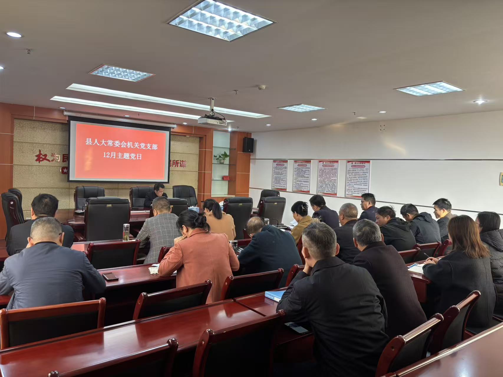 12 月 12 日,县人大常委会机关党支部开展“决战收官交答卷 实干笃行谋新篇”12月主题党日学习活动暨县人大常委会机 关党组理论中心组集体学习会,县人大常委会机关全体党员参加 会议,县农业和农村委员会副主任委员甘建儿及年轻干部列席。