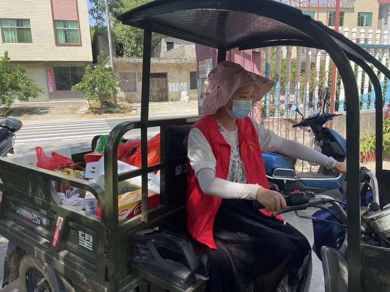 一上午的核酸采样工作结束后,下午廖洋又接着准备采购配送村民在村委会申报的物资。年纪轻轻的她每天骑着一辆电动三轮车穿梭在村里的每条小巷,只为把物资送到每一个村民的手中。她笑着说:“看到村民领物资时候的开心笑容,我的心里也是甜的,也不觉得辛苦了。”