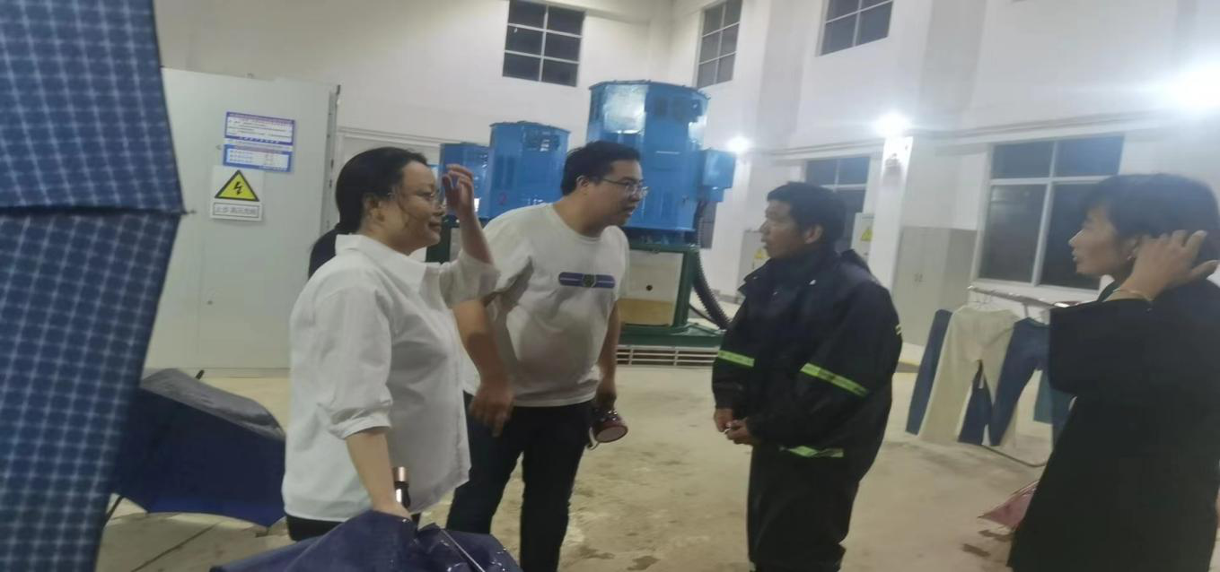 晚上10点,在镇内值班的大洋州镇党委副书记、镇长、镇人大代表杨迎看着窗外愈下愈烈的雨水,担忧的说到,“这雨下的越来越大,路面都开始积水了,不行,我们得赶紧去看看排水情况!”随后,她便带着值班干部迅速赶往新市村查看泄洪排涝站设备运行维护情况,紧接着又赶往地势低洼、积水已经比较深的路段设置警示牌,警醒群众出行注意安全。此时风雨已经打湿了她的全身。