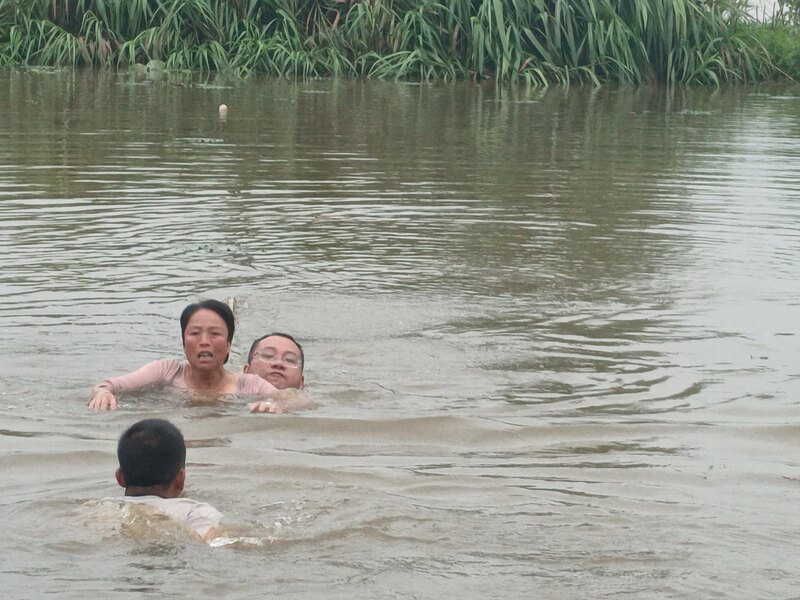5月6日凌晨5点,天蒙蒙亮,趁着雨停得到短暂休息的代表们又纷纷投入查看农作物受灾情况、巡查地质灾害隐患点、山塘水库水位和溢洪道泄洪情况、清理路面淤泥和路障等工作中。上午9点50分,大洋洲镇党委副书记、镇人大代表唐小平正在甘泉村湖庄村小组巡查灾情,突然听到有人呼救,立即寻着呼救声跑过去查明情况,看到村民杨玉华在水塘旁一边指着正在水中挣扎的村民刘四琴,一边焦急地呼救。情况十分紧急,心系群众生命安全的唐小平直接穿着衣服就跳进水塘救人。在两米多深的水塘里,唐小平奋力地向刘四琴游去,在抓住她的那一刻,高高悬起的心终于落下。然而,托着一个成年人游回岸边并不容易,唐小平一不小心就呛了几口水,还好此时大洋洲镇人大代表熊伟已经游过来协助,最终三人都安全上岸。