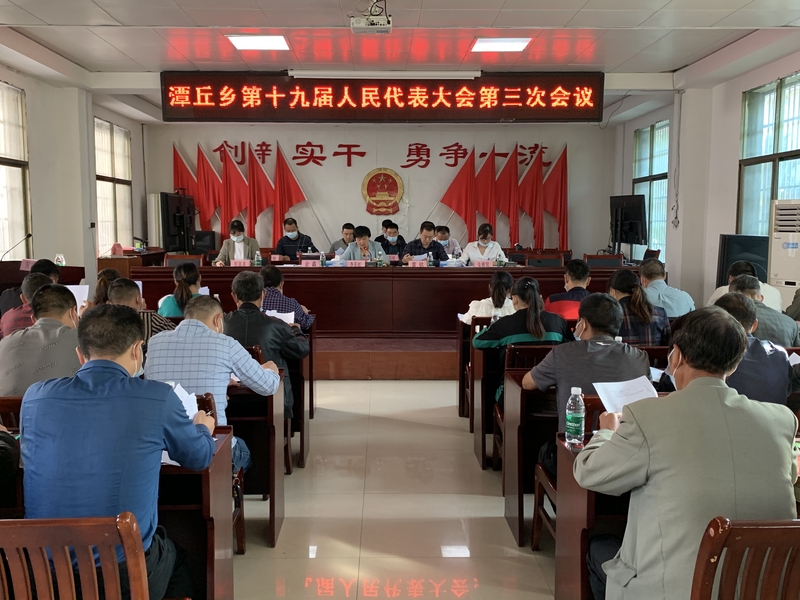 11月10日至11日,潭丘乡第十九届人民代表大会第三次会议胜利召开,全乡应到人大代表55名,实到代表48名,符合法定人数。非潭丘乡人大代表的乡班子成员、乡干部、原院内各站所负责人、乡直单位负责人、乡老干部党支部书记等列席会议。会议听取审议并表决通过了乡党委副书记、乡长黄铭同志所作的《政府工作报告》、乡人大副主席李雅琴同志所作的《人大主席团工作报告》,并表决通过了李佥平同志的辞职请求,在回顾总结中,共谋潭丘乡发展大局。