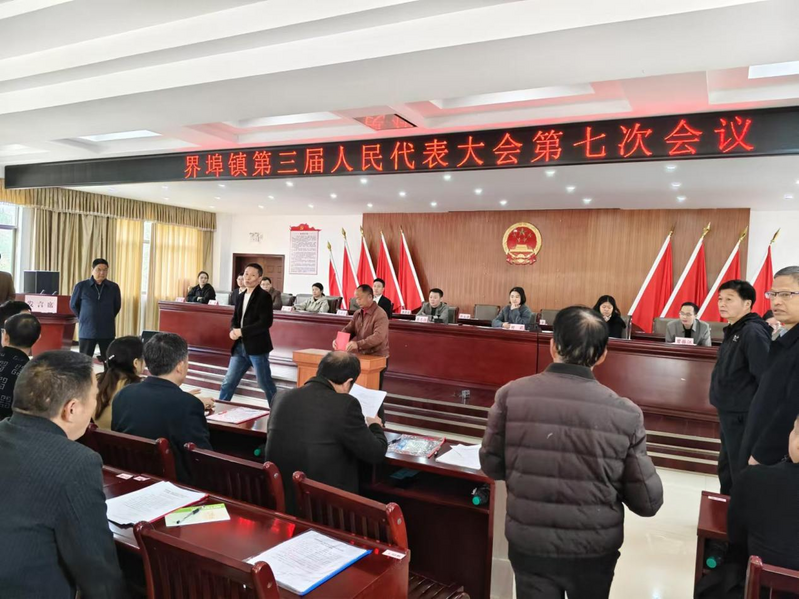2024年11月20日至22日,界埠镇第三届人民代表大会第七次会议胜利召开,本次会议应到会代表62名,实到会代表54名,符合法定人数。非镇人大代表的镇班子成员、镇干部、村书记主任、各办公室负责人及镇直单位负责人列席会议。