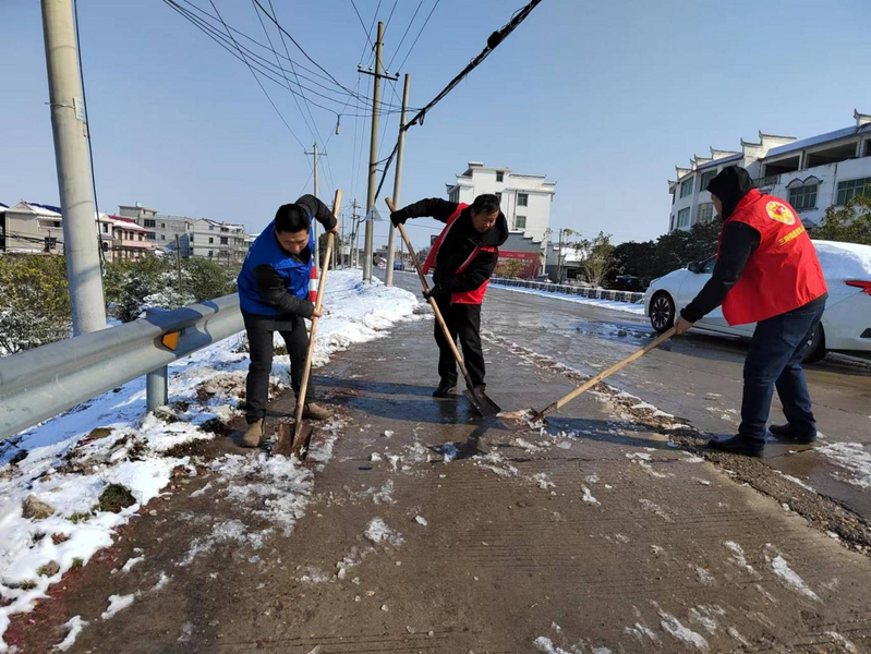 破冰除雪消除安全隐患。三湖镇人大主席团组织在镇50余名各级人大代表积极投入到抗灾中,代表们用铁锹、铁铲清除道路积雪,帮助困难群众、孤寡老人打扫门前积雪,鼓励群众投入到雪灾险情的排危消危中,保障出行道路的畅通。