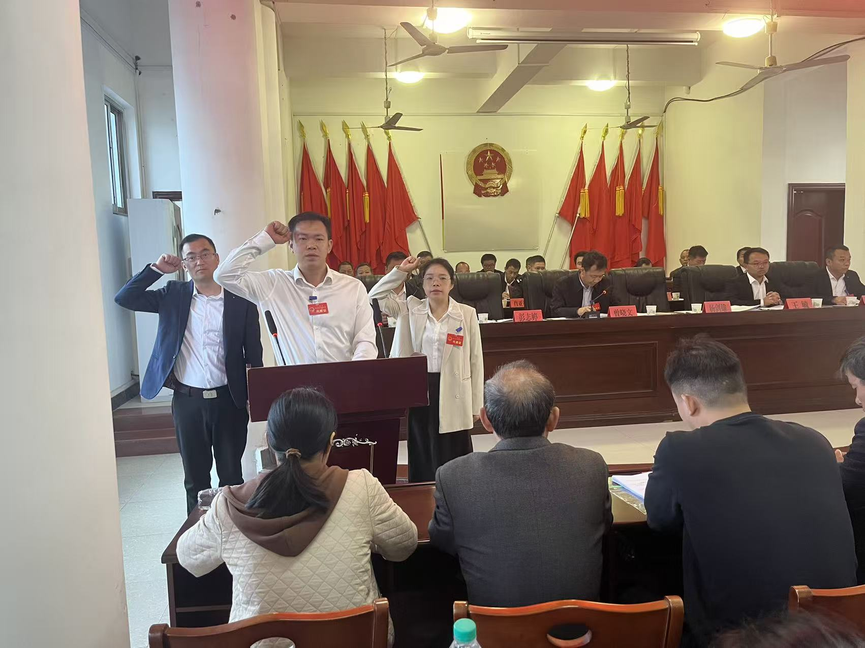 大会听取、审议并通过了《三湖镇2025年前三季度人民政府工作报告》以及《三湖镇2025前三季度人大主席团工作报告》。表决通过了《关于接受张晓云同志辞去三湖镇人大主席职务请求的决定》;《接受傅斯云辞去三湖镇人民政府副镇长职务的请求》。根据《选举法》相关程序要求,大会以无记名投票方式成功选举杨剑雄同志为三湖镇人民政府镇长;彭志婷同志为三湖镇人大主席;洪晓星同志为三湖镇人民政府副镇长,并在与会代表的公共见证下,进行了庄严的宪法宣誓。