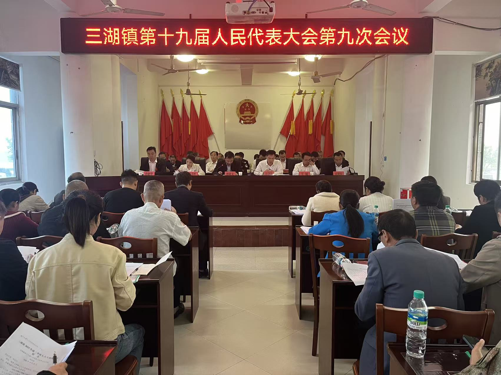 2025年10月29日至31日,三湖镇第十九届人民代表大会第九次会议胜利召开。大会应到代表72名,实到代表53名,符合法定人数,非三湖镇人大代表的镇班子成员、镇机关干部、村(社区)党支部书记、镇直单位负责人、老干部支部书记、县人大代表列席会议。